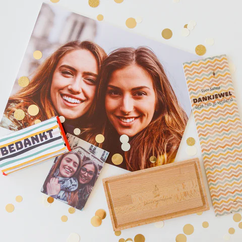 Het kan soms behoorlijk lastig zijn om een uniek bedankje voor je stagebegeleider te vinden. Om je hier een handje bij te helpen, hebben we verschillende ideeën voor jou op rij gezet. Met een lekker stuk chocolade zit je altijd goed, ga voor een heerlijke Merci Chocolade met eigen foto of een Tony's Chocolonely met eigen wikkel en tekst.