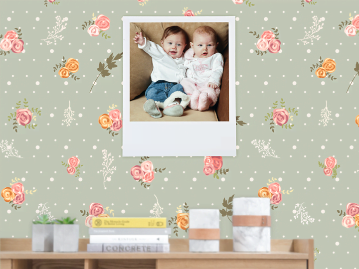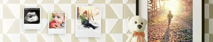 Geef de kinderkamer een eigen karakter door alvast foto’s op te hangen. Dit kan met Retroprints Deluxe, een foto die gedrukt wordt op stevig karton met de bekende polaroid look. Helemaal jaren 70 maar dan wel in een hip jasje. Hang alvast de echo foto’s op en breid dit uit door van elke maand na de geboorte nog een foto op te hangen. Zo zie je elke keer als je de kinderkamer inloopt de groei van jullie kleine.
