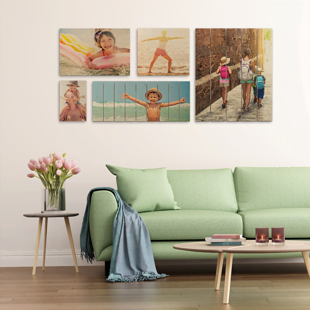 Weet je niet welke foto je moet kiezen? Je kunt ook meerdere kleinere foto’s op het hout laten drukken. Wat ook leuk is, is om meerdere kleine foto’s op hout te drukken en deze bij elkaar aan de muur te hangen.