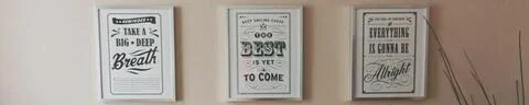Heb jij een favoriete zin die je altijd blijft herhalen? Waar je vrienden jou helemaal in herkennen? Dan kun je deze zin hiervoor gebruiken! Persoonlijker dan dit kan haast niet. De foto’s kun je met en zonder lijstje ophangen voor een speels effect!