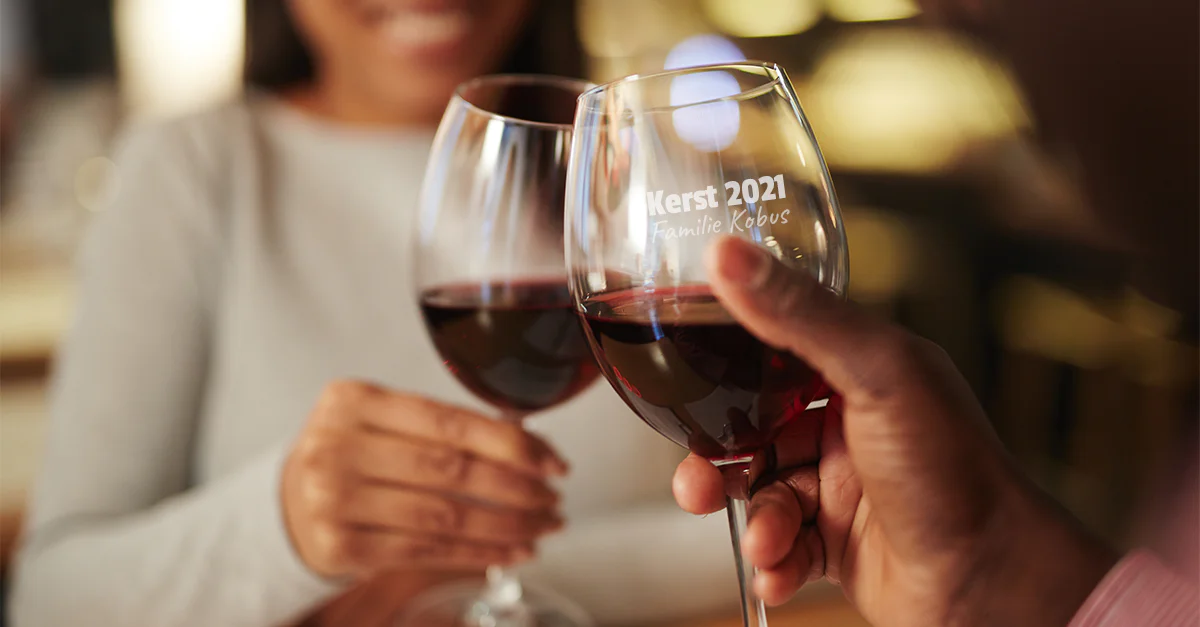 Breng dit jaar een toost uit met een bijpassend glas. Een bierglas met de familienaam, een wijnglas met een wens of een champagneglas om 2022 mee in de luiden. Wat je ook drinkt, je drinkt het dit jaar uit een gepersonaliseerd glas om de feestdagen extra speciaal te maken.