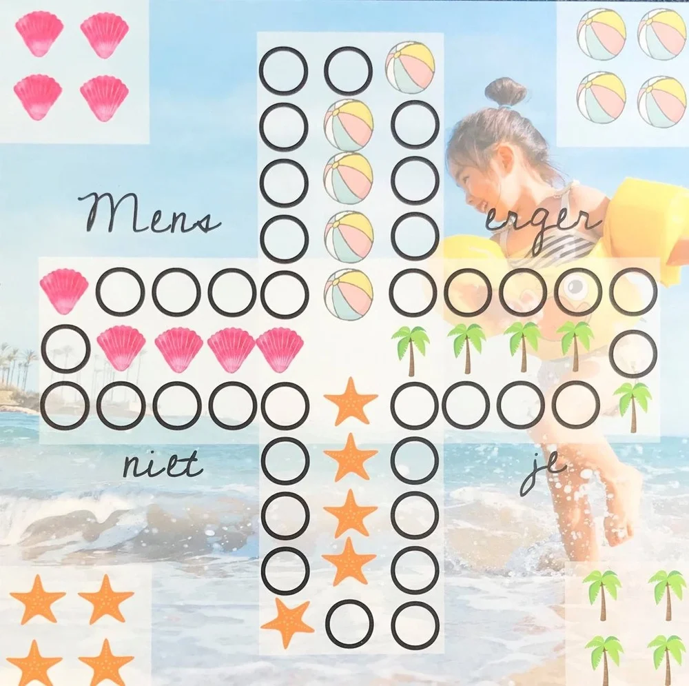 Een van de oudste spelletjes die we kennen is natuurlijk 'Mens erger je niet!', maar vind je ook niet dat het bord wat saai en klein is? Hoe leuk zou het zijn om dit spel in een grotere en vrolijkere versie te spelen? Je kunt het spel vullen met je eigen thema, bijvoorbeeld met het thema 'strand'. Het leukste is, je kunt een leuke foto toevoegen om het gepersonaliseerde bordspel nog leuker te maken. Het bord op de afbeelding is een Foto Op Karton 60x60 en ontworpen in de Online Editor. Daarnaast kun je er natuurlijk ook voor kiezen om het spel op te maken in een van de Adobe programma's als je dit makkelijker vind werken.