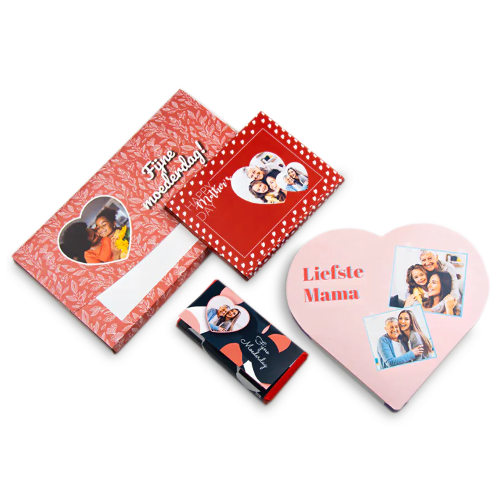 Kies uit de vele kant-en-klare thema’s start met een blanco project in de Online Editor van Fotofabriek. Laat een chocoladecadeau maken met naam, lieve quote of mooie foto! Een chocoladecadeau voor jouw moeder, stiefmoeder, pleegmoeder, schoonmoeder, oma of zus(je) is nooit verkeerd. Al helemaal niet wanneer je het personaliseert!