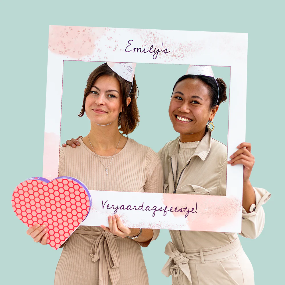 Hang bijvoorbeeld een groot feestbord aan de deur met de naam of foto van de jarige. Of personaliseer je eigen fotoframe voor de leukste foto’s van het feestje. Je kunt ook de jaarlijkse slingers eens voor gepersonaliseerde feestslingers vervangen. Voeg je eigen kleuren en foto’s toe, zodat de slinger helemaal naar eigen wens is. Nu ontbreekt alleen nog een beetje versiering van de gasten en dan zijn jullie helemaal klaar om de jarige te verrassen. Zet je feesthoedje op met de gekste of leukste foto van de jarige of bedruk het feesthoedje met zijn of haar naam. Zo tover je zeker een glimlach van oor tot oor tevoorschijn!