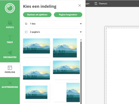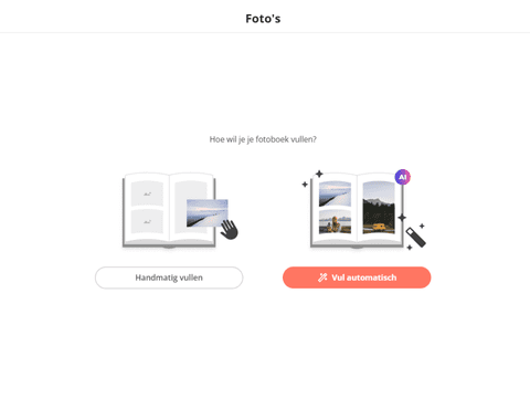 - Automatisch invullen: Laat de Editor automatisch foto's op de pagina plaatsen. Extra handig als je veel foto's hebt.