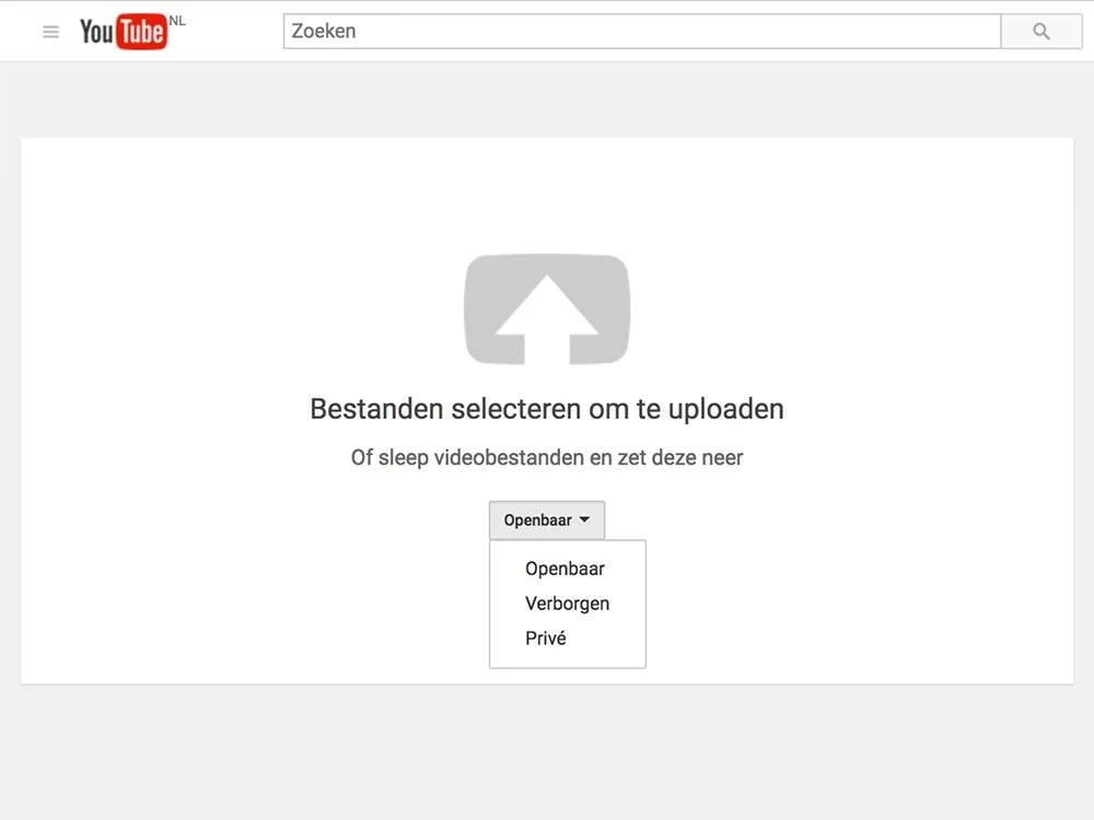 Voordat je een fotoboek met filmpjes kunt maken, upload je jouw video's naar een online platform zoals YouTube, Vimeo of Google Drive. Gebruik bij voorkeur de privacy-instelling “verborgen” of “onzichtbaar”, zodat alleen mensen met de link toegang hebben. Zo blijft je filmpje privé.