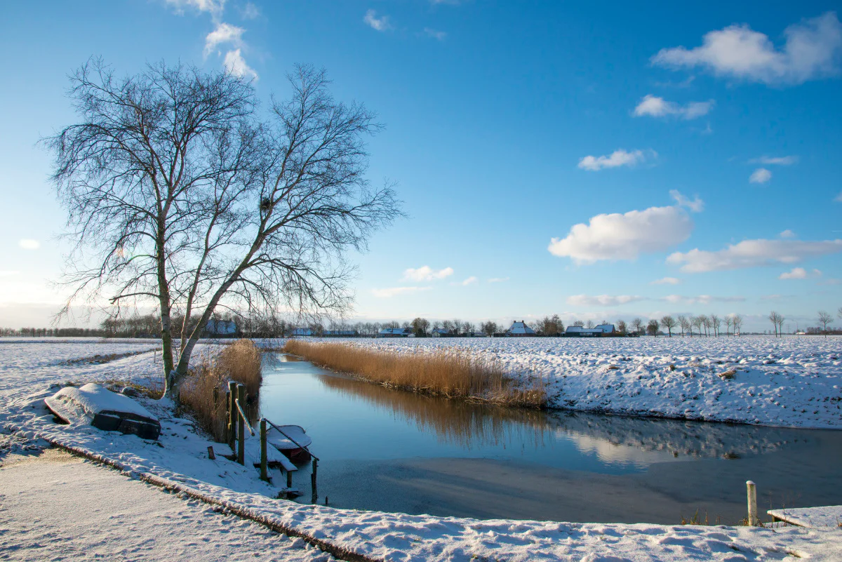 Bij een winterlandschap maakt het niet uit op welk tijdstip van de dag je fotografeert. Elk moment van de dag heeft zijn eigen charme en heeft zijn eigen kleurtemperatuur. Een witte wereld in de ochtendmist is heel mooi, maar een wit landschap met een knalblauwe lucht erboven midden op de dag kan ook heel mooi zijn. (Bij een foto met een blauwe lucht zit er meer contrast in een foto, dan bij een volledig witte foto en zal je dus niet of nauwelijks de belichting hoeven te plussen!!) Pak dus je camera en ga erop uit!