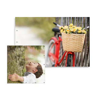 Wij drukken het buitenschilderij op duurzaam bisonyldoek en voorzien het buitenschilderij van stevige metalen ringen. Je kunt ook kiezen voor transparante ringen, zeilklemmen of geen ringen. Onze buitenschilderijen zijn weerbestendig en hebben een zeer hoge kleurechtheid. Zelfs de zon heeft geen invloed op de kleurechtheid van het buitenschilderij. Het schilderij is namelijk ook UV-bestendig.