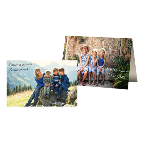 De fotokaarten worden gedrukt op stevig 240grams sulfaatpapier. Je kunt naast de standaard papierkeuze als afwerking ook kiezen voor hoogglans (glanzende uitstraling) of natuurwit (minder wit dan standaard papier).