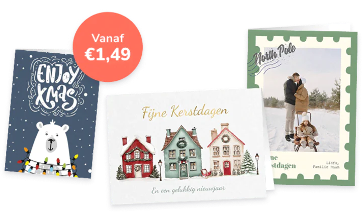 Zodra je onze Online Editor opent kun je gelijk kiezen voor verschillende ontwerpen van kerstkaarten. Dit doe je door op ‘’Automatisch vullen” te klikken. Je kunt hier eventueel nog foto’s en teksten aan toevoegen. Ben je tevreden over het ontwerp? Dan kun je direct de kaarten in productie laten nemen en laten verzenden.