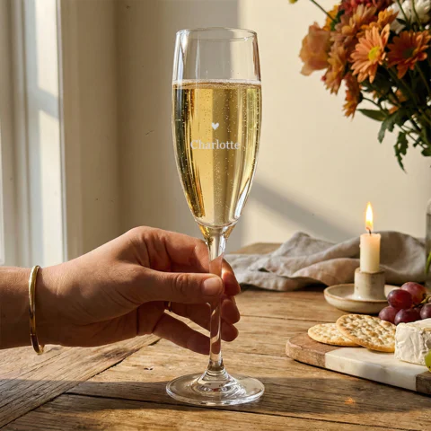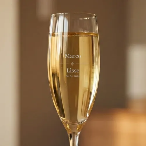 Champagne glas graveren maakt van elk diner een persoonlijk en feestelijk moment, of je nu kerst viert, een verjaardag organiseert of samen proost op een jubileum, en met een naam, tekst of eigen ontwerp geef je jouw tafel direct karakter. Met een inhoud van 180 ml zijn deze glazen perfect voor champagne en mousserende wijnen, terwijl de slanke kelk bubbels en aroma’s langer behoudt en de heldere glasafwerking zorgt voor een sprankelende presentatie.