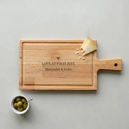- Love at first biteEigen naam · Hout of PlexiglasMaak jullie borrelmomenten nog specialer met deze 'Love at first bite' plank. Een knipoog naar jullie eerste ontmoeting én jullie gedeelde liefde voor lekker eten. <BREAK> Laat jullie namen eronder graveren voor een uniek en romantisch pronkstuk op tafel.Goudfolie0 foto's