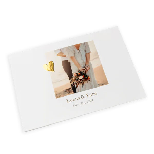 Sommige herinneringen zijn zó waardevol, dat ze vragen om een extra bijzondere manier van vastleggen. Dit kan door de tekst op de cover van je fotoboek in gouden letters te laten drukken. Deze stijlvolle, glanzende afwerking geeft je titel, naam of jaartal een luxe uitstraling en maakt je boek écht speciaal. Voeg de gouden tekst gemakkelijk toe in de Online Editor, tegen een kleine meerprijs van € 5,99 per boek.