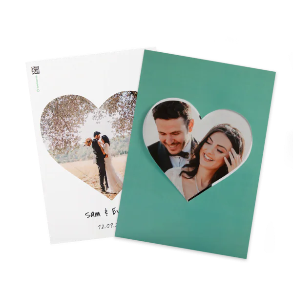 Er zijn verschillende vormen voor de draaikaart beschikbaar. Twee voorbeelden zijn een hart en een wolkje. De kaart met het hart in het midden is uitermate geschikt voor bijvoorbeeld Moederdag of Valentijnsdag of gewoon om een vriend mee te verrassen. Plaats in het hartje bijvoorbeeld een foto van jullie twee. Het wolkje is leuk om voor geboortekaartjes te gebruiken. Ook kun je teksten in verschillende lettertypen en grootten toevoegen, om zo jouw boodschap over te brengen.