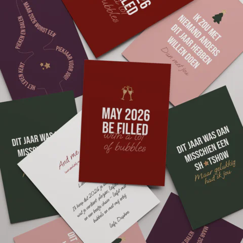 Dat was ook mijn uitgangspunt toen ik samen met Fotofabriek deze kaarten voor de feestdagen bedacht. Want hoe fijn om een vriend of vriendin die misschien ook geen fantastisch jaar heeft gehad, een hart onder de riem te kunnen steken? Of misschien zit je zelf in wat mindere periode, maar ben je wel héél blij met de lieve mensen om je heen. Want juist deze periode kan extreem lastig aanvoelen als je – op wat voor manier dan ook – met verdriet hebt te dealen. En een klein gebaar zoals het sturen van een kaartje kan grootste impact hebben.