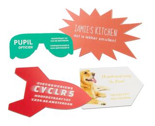 Bij Fotofabriek hebben we een aantal snijvormen ontwikkeld die je kunt gebruiken om dit te realiseren en je eigen creatieve (en bovenal hippe) visitekaartjes te kunnen maken. Deze aparte vormen voor visitekaartjes zijn ook gewoon aan beide kanten bedrukbaar.